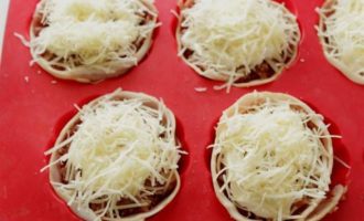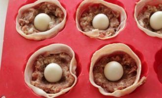 Формочки для кексов наполовину наполнить подготовленным фаршем.