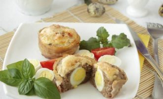 Поставить форму с мясными кексами в нагретую до ~180-200°C духовку и запекать ~30-40 минут.