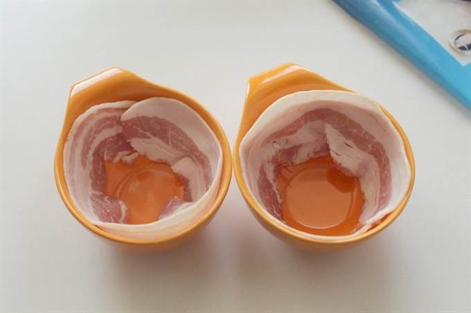 В фарш добавить яйцо, посолить, поперчить.(соли кладите по-меньше, с учетом солености бекона и сыра) -