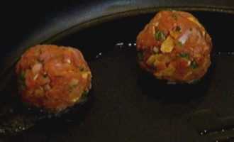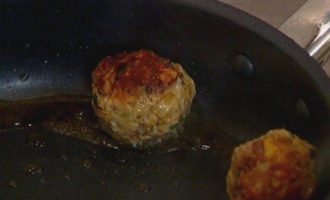 Разогреть в сковороде оливковое масло и обжарить тефтельки со всех сторон.