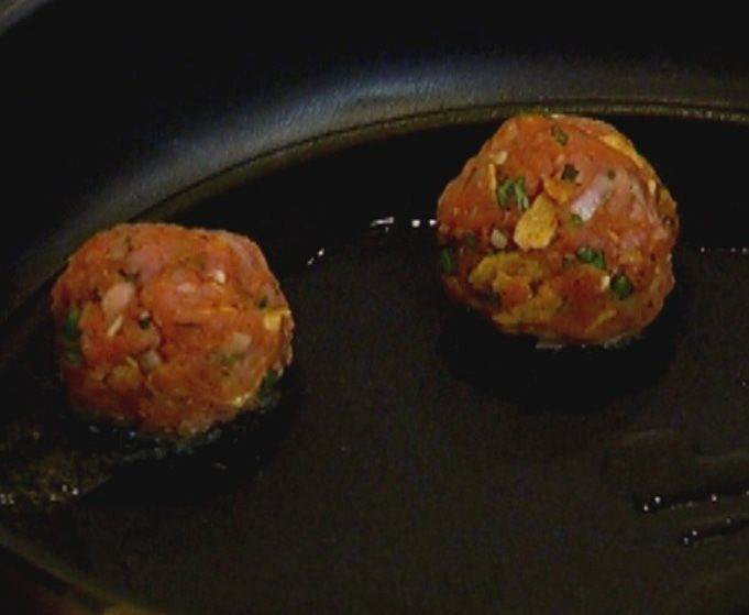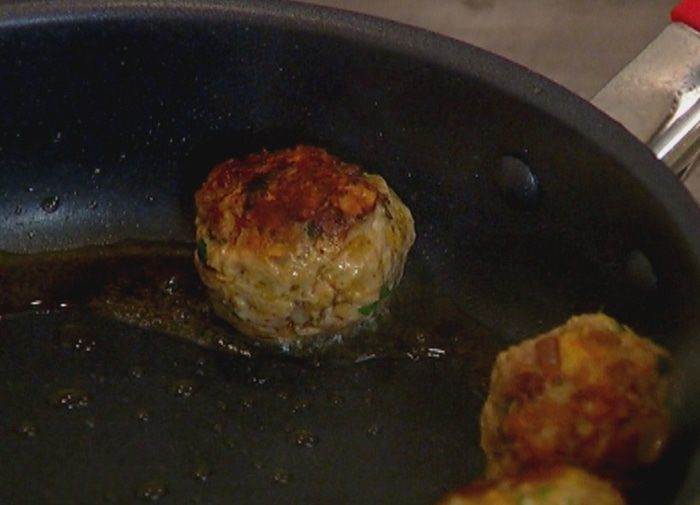 Разогреть в сковороде оливковое масло и обжарить тефтельки со всех сторон.