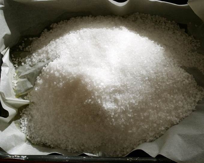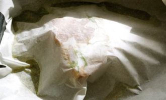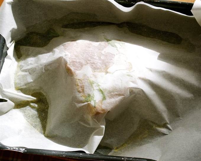 Сверху засыпать противень крупной солью таким образом, чтобы она полностью накрывала мясо (в качестве «крышки»), но при этом не была с ним в прямом контакте! То есть между мясом и солью должна быть бумага… Соли используйте, сколько понадобится. Мне хватило 1 кг. (к сожалению, в ингредиентах не удалось указать 1 кг соли, вес указан в граммах).