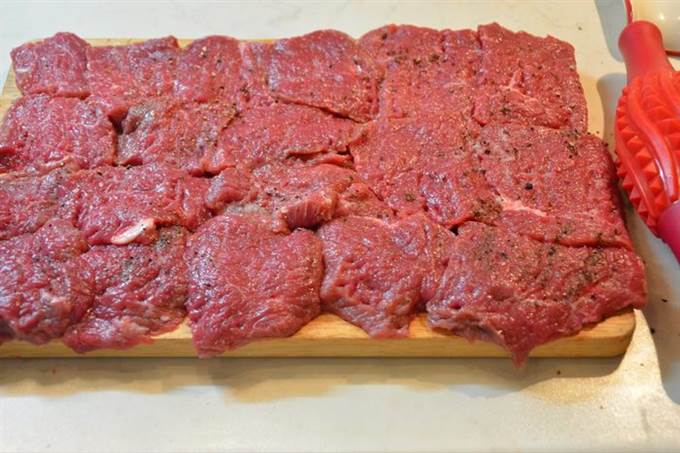Отбить любым удобным вам способом с двух сторон. Посолить и поперчить с обеих сторон.