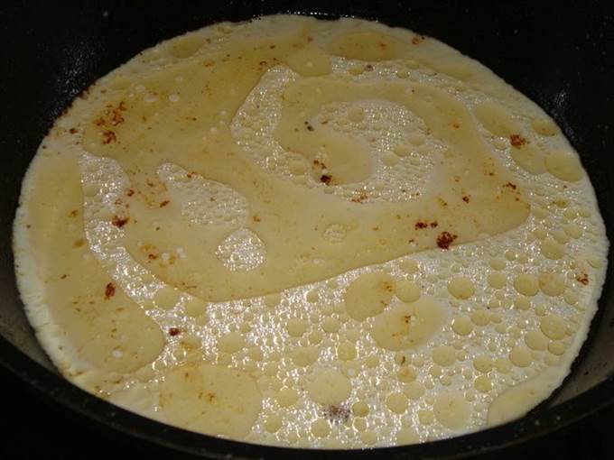 • В сковороду с маслом влить сливки и прогреть на медленном огне в течение 5 минут.