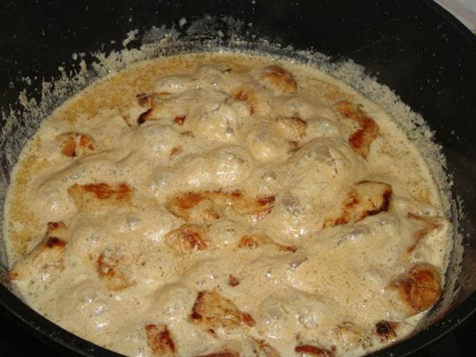 • Выложить филе в сливки и тушить под закрытой крышкой 15 минут.