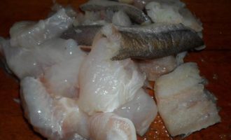 • Рыбу очистить от костей или просто взять филе. У меня хек и морской язык. Нарежьте кусочками.