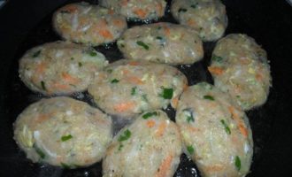 • Смоченными руками сделать котлетки и обжарить на растительном масле с двух сторон.