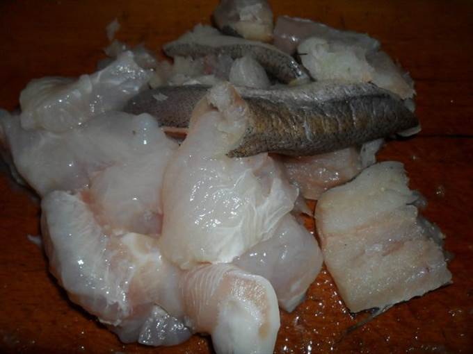 • Рыбу очистить от костей или просто взять филе. У меня хек и морской язык. Нарежьте кусочками.