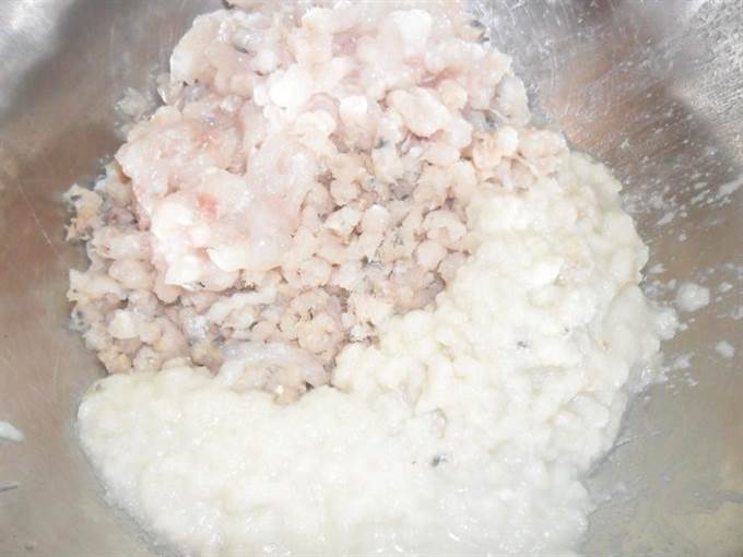 • Пропустите рыбу вместе с отжатым хлебом через мясорубку.