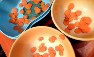 • Морковку нарезать на кружочки.