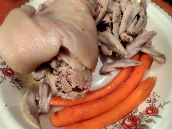 • Я варила с 8 вечера до половины 12-го, т.е. 3,5 часа. Вынимаем на большое блюдо содержимое кастрюли.