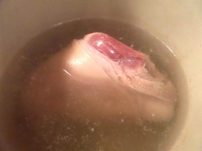 • Высокий слой желе я не делаю, а излишки бульона идут на суп. На этот раз сварила фасолевый, добавив воды.
