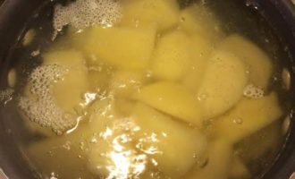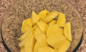 • Пока мясо тушится, картофель крупно нарезать.
