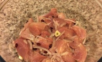 • Для этого блюда мясо я мариную 5 — 6 часов, так оно получается более нежное и ароматное.