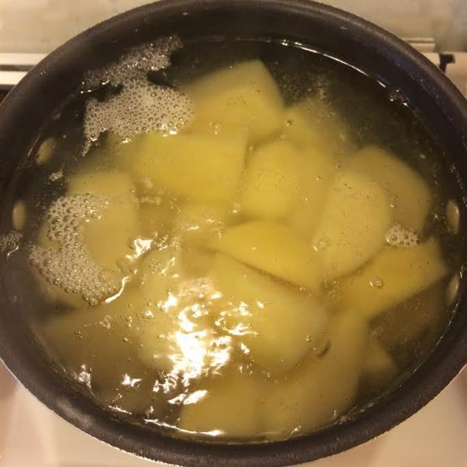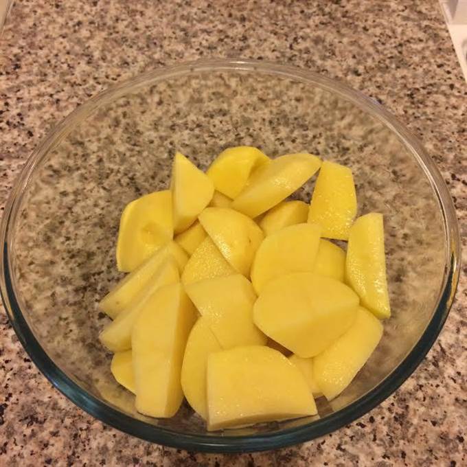 • Пока мясо тушится, картофель крупно нарезать.