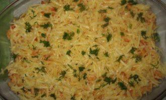 • Посыпаем тертым сыром и укропом. Ставим в духовку на 10-12 минут.