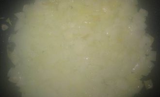 • Нарезаем лук и жарим его на растительном масле 3- 5 минут. Добавляем измельченный чеснок.