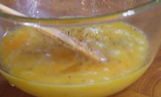 Яйца слегка взбить, посолить, поперчить.