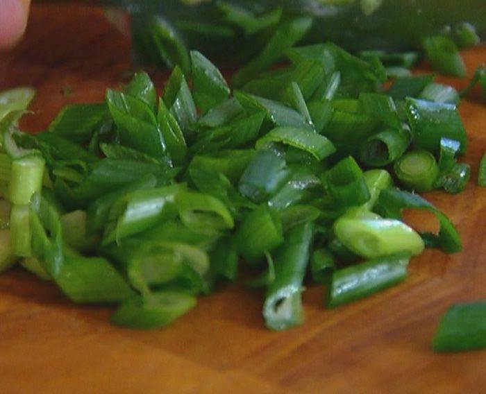 Зеленый лук мелко нарезать.