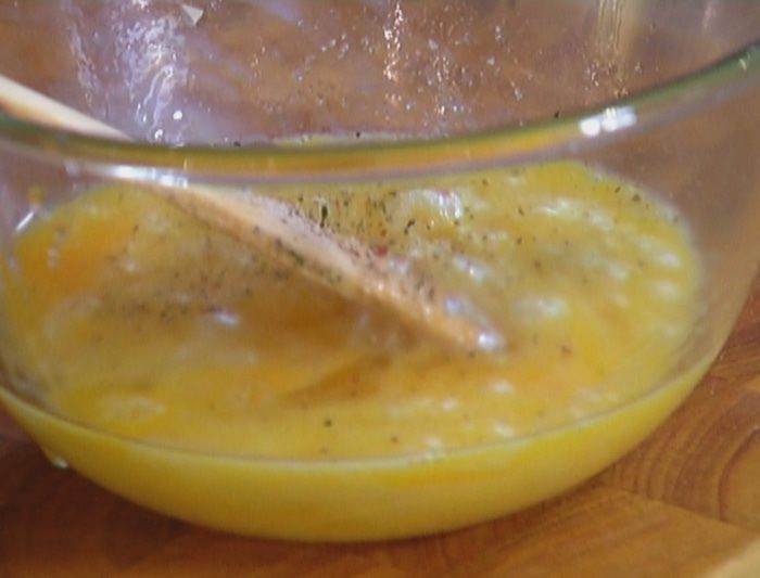 Яйца слегка взбить, посолить, поперчить.