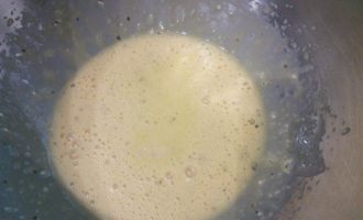 Желтки отделить от белков. Белки взбить со щепоткой соли в крепкую пену. Желтки смешать со сливочным сыром.
