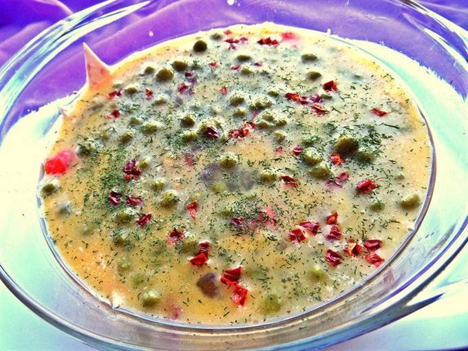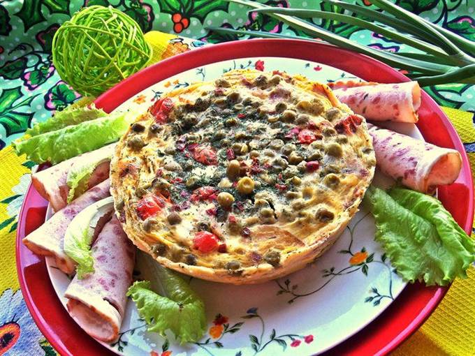Заливаем остатками омлета, верх ещё посыпала укропом.