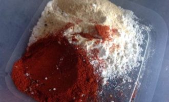 Смешайте муку, паприку, чесночный порошок и красный перец.