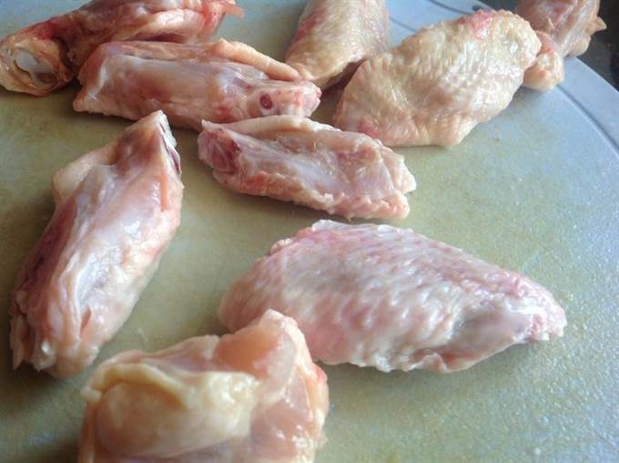 Положите куриные крылышки, в кулек сверху высыпьте сухую смесь и хорошо перемешайте.
