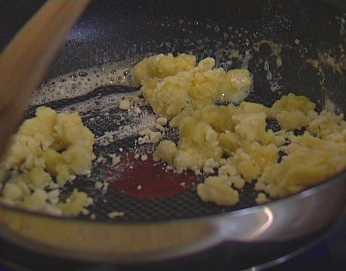 Довести соус до кипения и, не переставая помешивать, готовить еще минуту, затем снять с огня, добавить сыр и размешивать, пока он не растает.