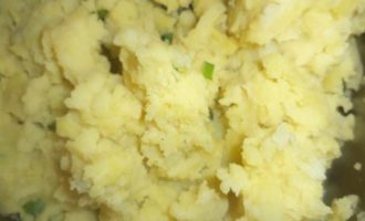 Мелко порубить пучок зеленого лука, добавить в пюре, тщательно перемешать. -