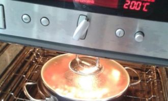 • Накрыть крышкой, поставить в духову при 200 градусах на 30 минут.