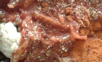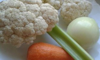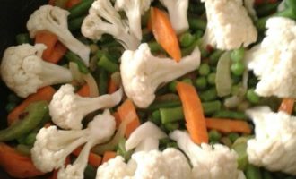 • Цветную капусту разобрать на соцветия, добавить к овощам.