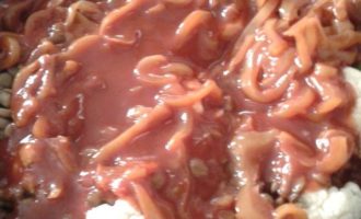 • Выложить отварную чечевицу.