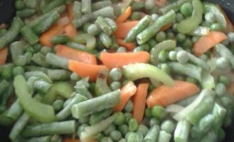 • Добавить мороженную стручковую фасоль, горошек.