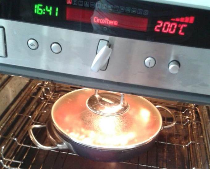 • Накрыть крышкой, поставить в духову при 200 градусах на 30 минут.