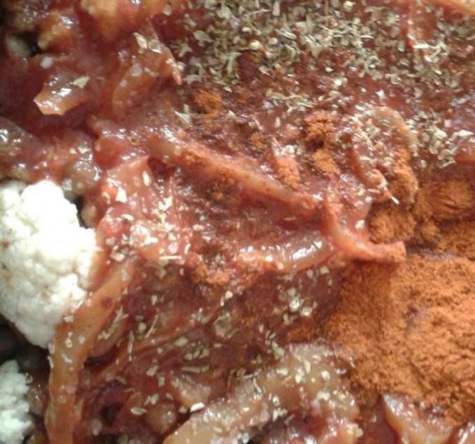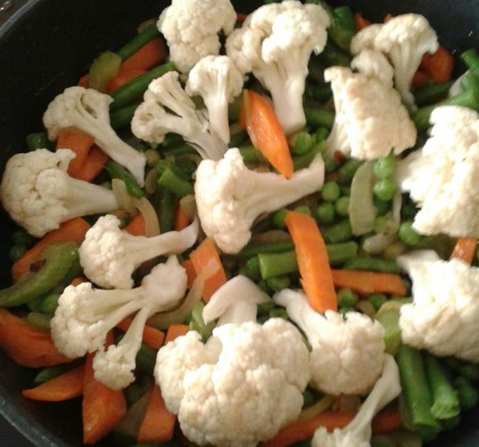 • Цветную капусту разобрать на соцветия, добавить к овощам.