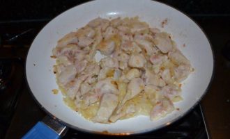 • Лук и чеснок очистить, порубить и обжарить на оливковом масле.