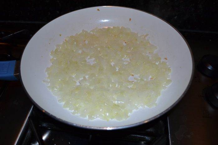 • Лук и чеснок очистить, порубить и обжарить на оливковом масле.