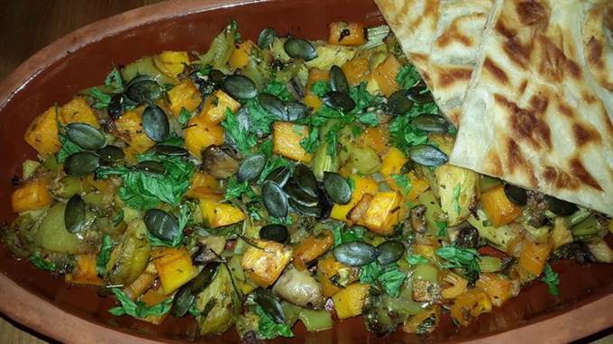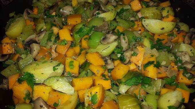 Овощной микс с тыквой, сельдереем и грибами