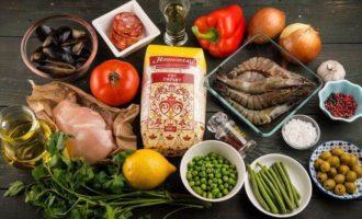 Для приготовления паэльи нам понадобятся следующие ингредиенты.
