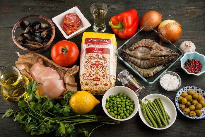Для приготовления паэльи нам понадобятся следующие ингредиенты.
