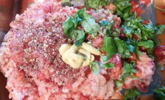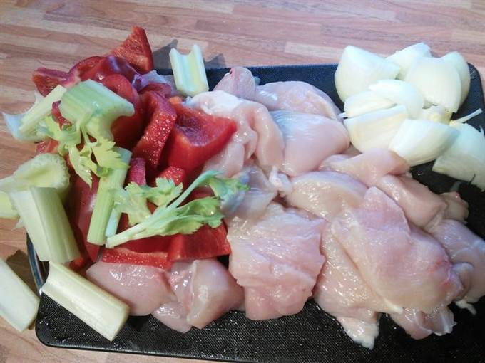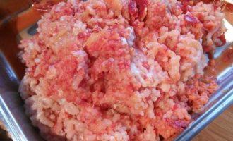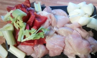 У меня было две штуки куриного филе на грудиной кости с кожей. Кожицу я аккуратно сняла, так же отделила филе от кости. Пропустила через мясорубку мяско, перец, лук и сельдерей.