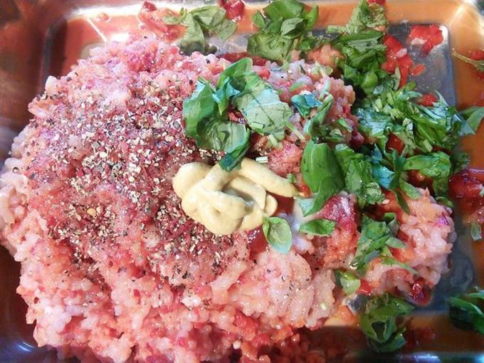 Теперь его нужно довести до ума: добавить соль, перец, специи любые на ваш вкус, горчицу, острый соус и соду. Так же свежий базилик. Тщательно вымешать.