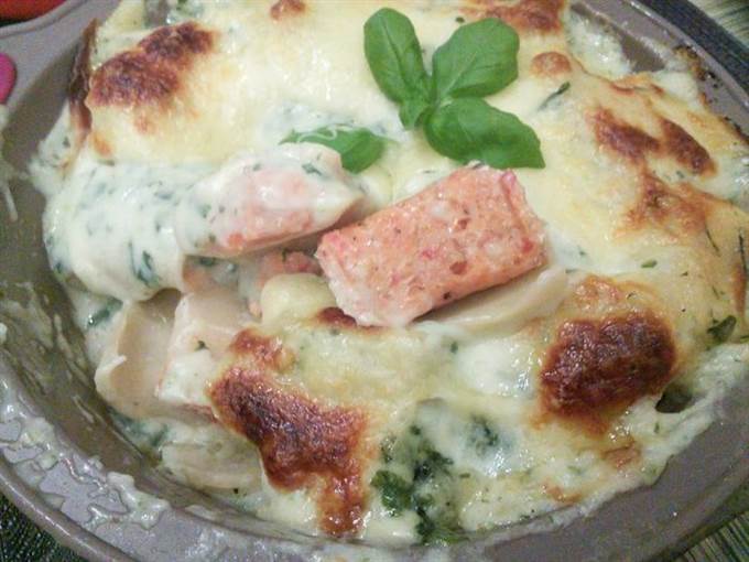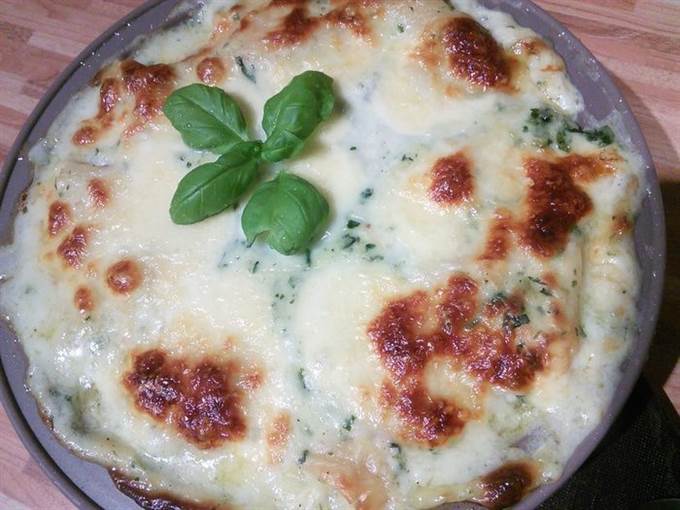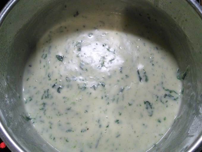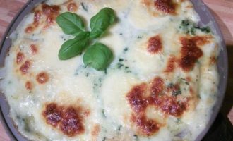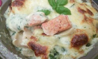 Соус бешамель варим стандартным способом, в конце добавляем замороженный мелко порубленный шпинат.