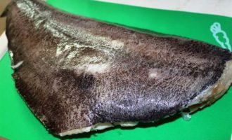 Тушку палтуса очистить от мелкой чешуи и внутренностей.