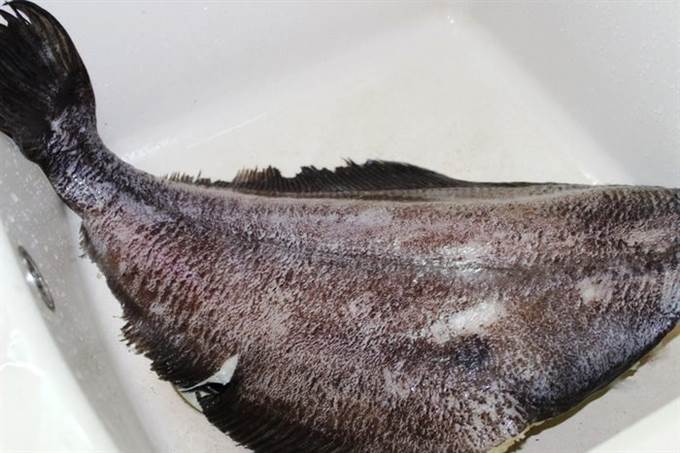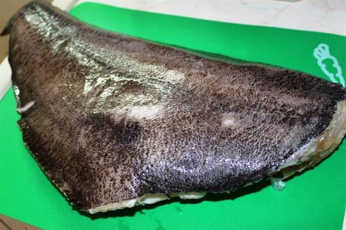 Тушку палтуса очистить от мелкой чешуи и внутренностей.