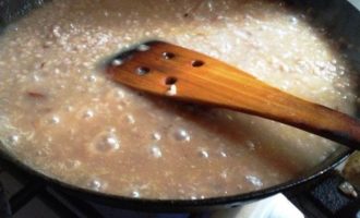 Небольшими порциями вливать бульон и готовить, постоянно помешивая, пока весь бульон не впитается. Посолить. Поперчить по вкусу.