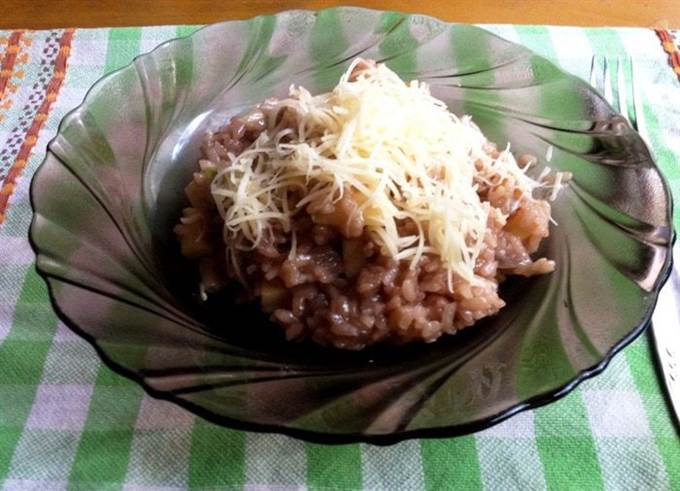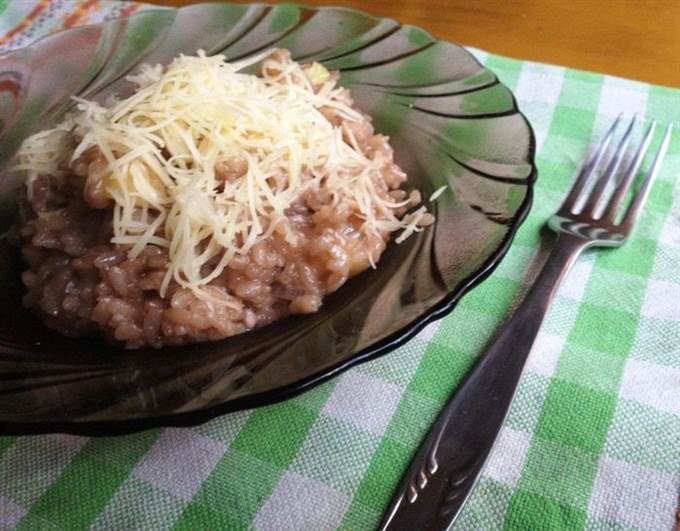 • Ризотто сразу же разложить оп тарелкам. Посыпать сверху сыром.