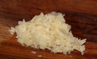 В это же время чеснок рубим.