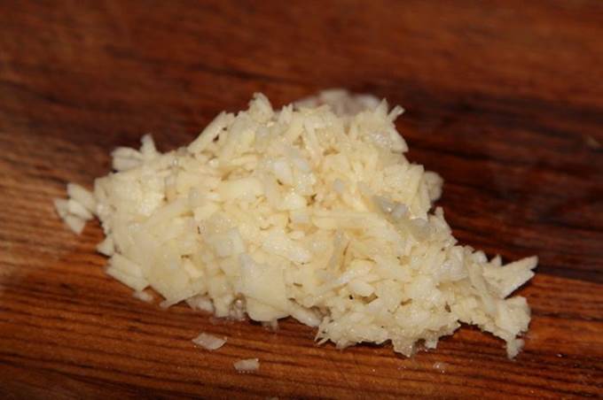 В это же время чеснок рубим.
